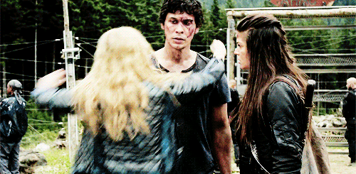 Bellarke being a team. Bellarke needing each other, saving each other, caring for each other, writing each other’s names down on the bunker list, forgiving each other over and over and over again. Bellarke fighting, breaking down, crying, willing to let the entire human race die for the other – and then, being reunited, the hugs (aaaaalll of the hugs!!!), eye-banging each other all the time, the looks of regret, the almost disgust on Clarkes face when she sees Becho for the first time – the list of all of the Bellarke romantic relationship that they SHOW us is ENDLESS. There are too many moments to list, too many glances, touches, remarks from other characters, hidden expressions, half-said truths, etc…